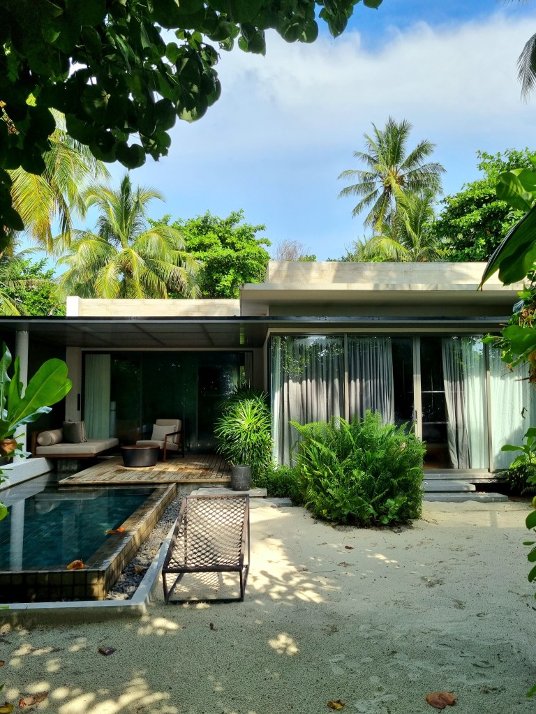 The refurbished Deluxe Beach Bungalow with Pool(s) absolutely nail the balance between retaining the essence of the traditional Maldivian luxury beach villa while modernising them and bringing them bang up to date. Interiors have been lightened and large windows both sea-facing and to the sides let in loads of light. The new beachside plunge pools are a good size. The pièce de resistance is the new bathroom (the main area now enclosed to control temperature) and rear garden area, featuring a second plunge pool with over-hanging day bed, and outdoor shower. We absolutely loved these villas. Unfortunately, the over water and multi-room villas were not quite available to view, but we assume the same attention to detail will persist throughout the categories.
