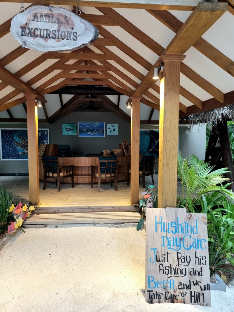 Folgliani’s is an excellent beach side grill (the Beyond Meat burger in squid ink bun our favourite item!), as is Vinum the impressive adjacent wine cellar. Main restaurant Celsius has a good menu and will benefit from the addition of the cold room which was nearly finished. Salt offers an Asian-Latin fusion in an over-water setting, which was lovely but not quite the best Japanese of our trip. Raw was the venue for Jo’s memorable Maldivian curry cooking lesson with chefs Ishara and Thanu, with outstanding results! It’s also possible to book the underwater spa room for dinner, which would be a fabulous experience.