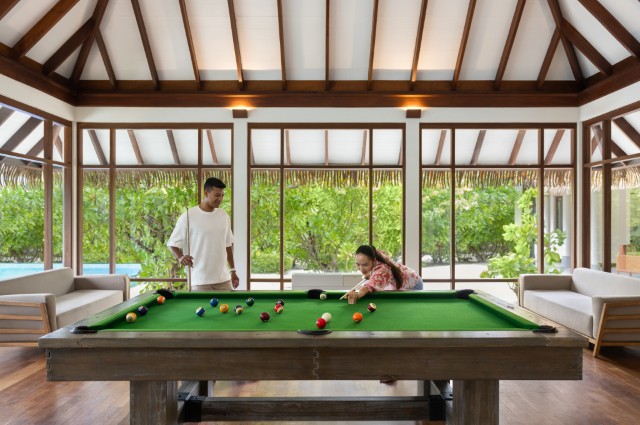Soneva Fushi is famous for its barefoot luxury – and for hosting one of the most spectacular kids’ clubs in the Maldives. The Den is a world of wonder, with a pirate ship, water slides, Lego rooms, music studios, and even a cinema. Parents can rest assured their children are not only entertained but inspired.