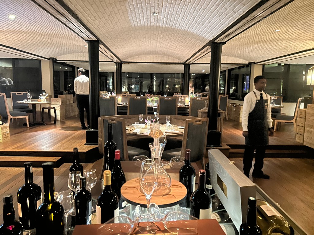 Chill Bar is the heart of the over water complex and a superb location both during the day or for pre or post dinner drinks, with occasional low-key entertainment, and a ‘No Rush Hour’ b-o-g-o-f between 10-11pm. Bar tender Mantara also makes a great first attempt at an Angelfish cocktail. The Sip Sip pool bar is an excellent daytime spot, and has a large sunset-facing beach area. We enjoyed a brilliant blind wine tasting challenge in the Altitude wine cellar, expertly guided by sommelier Akul.