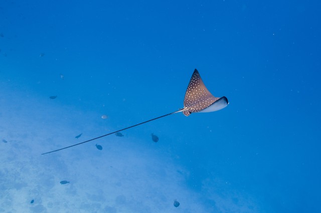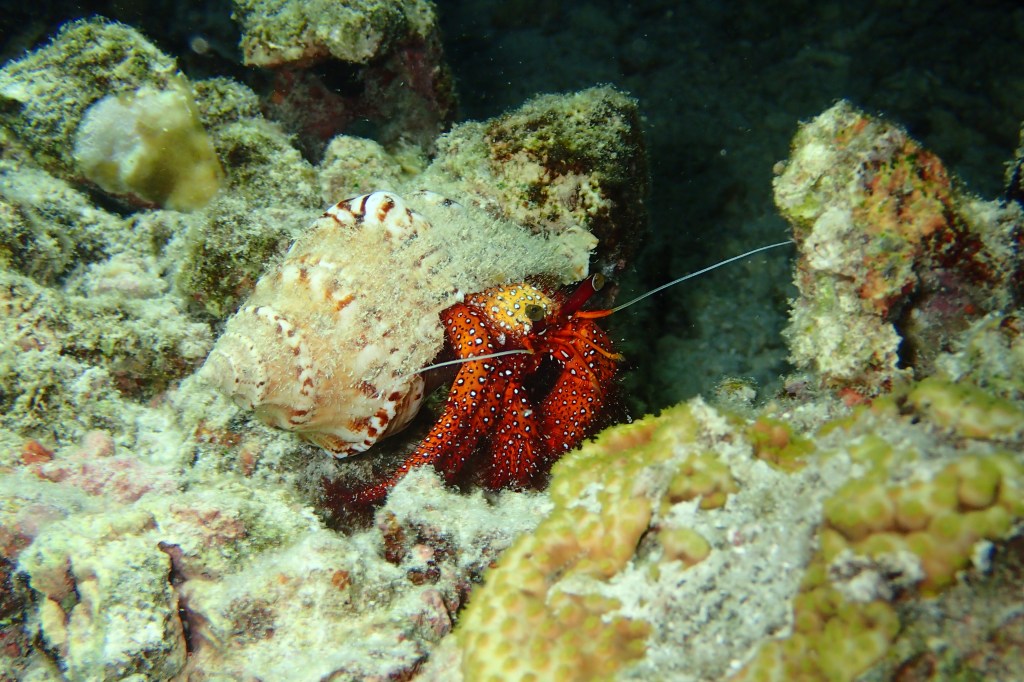 Easy access through channels from the lagoon to a vibrant house reef, one of the best that we have seen since the 2015-17 mass bleaching. Beautiful coral gardens to explore with plenty of varied marine life, including the most Regal Angelfish we’ve seen on a single reef. We also enjoyed a guided night snorkel with rays, nurse sharks and lion fish.