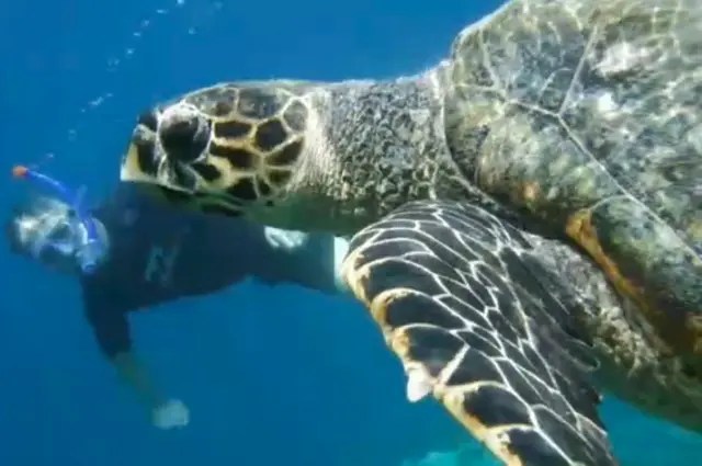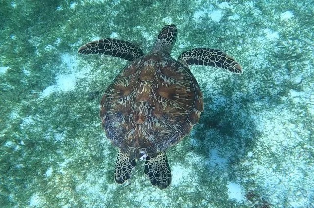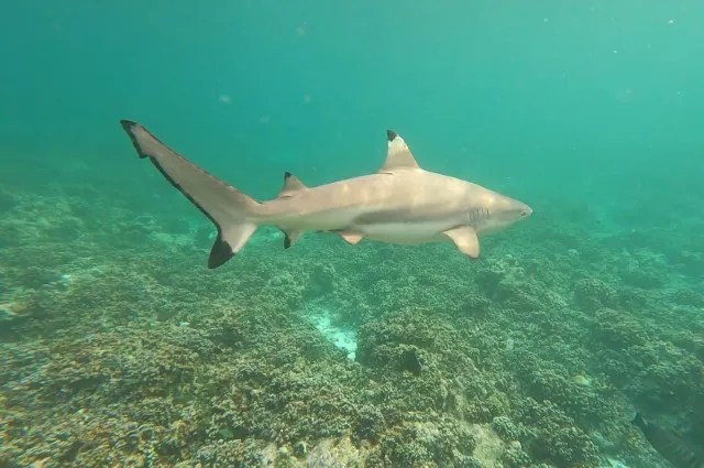 Blacktip reef sharks are especially common around house reefs and are harmless to snorkellers, while turtles are frequently seen grazing on seagrass or resting among the coral.